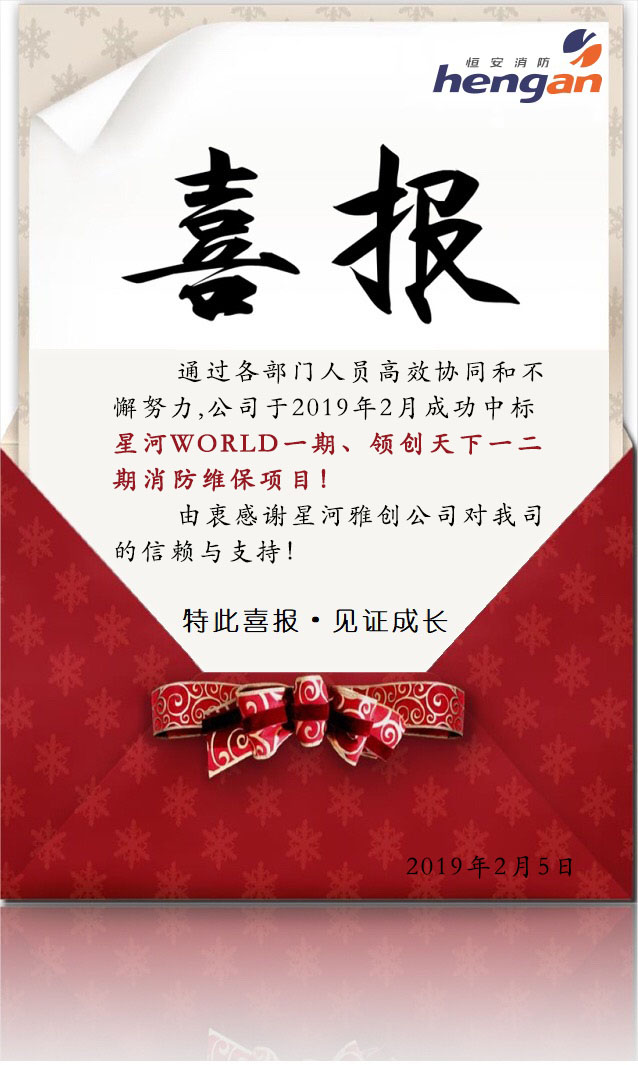 中標(biāo)“星河WORLD一期、領(lǐng)創(chuàng)天下一二期消防維保項(xiàng)目”