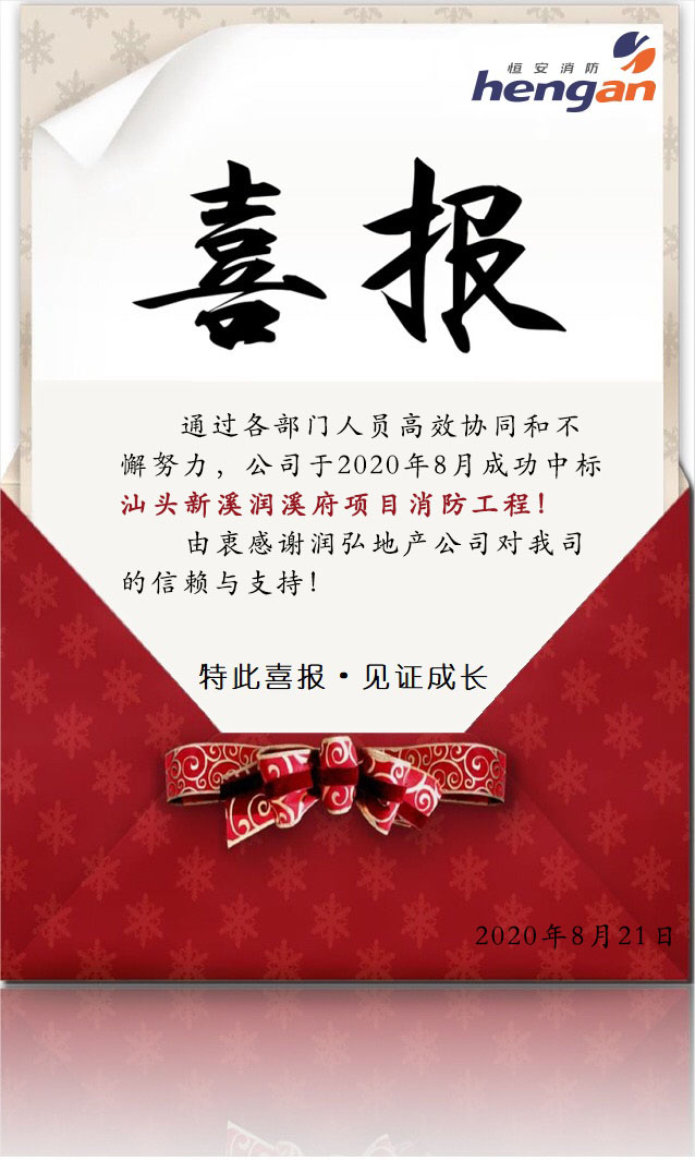 中標(biāo)“汕頭新溪潤(rùn)溪府項(xiàng)目消防工程”